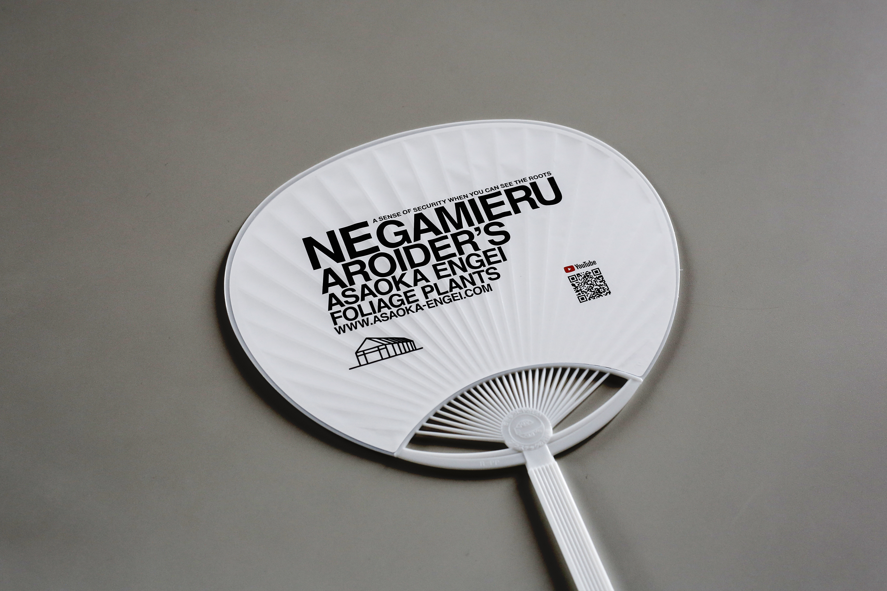 浅岡園芸 CL:浅岡園芸(安城市) うちわ ポトスを代表とする植物を中心に観葉植物を生産している浅岡園芸様(AROIDER’S)のオリジナルうちわを制作しました。透明鉢ネガミエルバージョン。根っこをイメージした「ネ」の文字とタイポグラフィの表現が目を引くデザインです。 instagram @asaokaengei facebook 浅岡園芸(aroider’s) HP http://www.asaoka-engei.com/