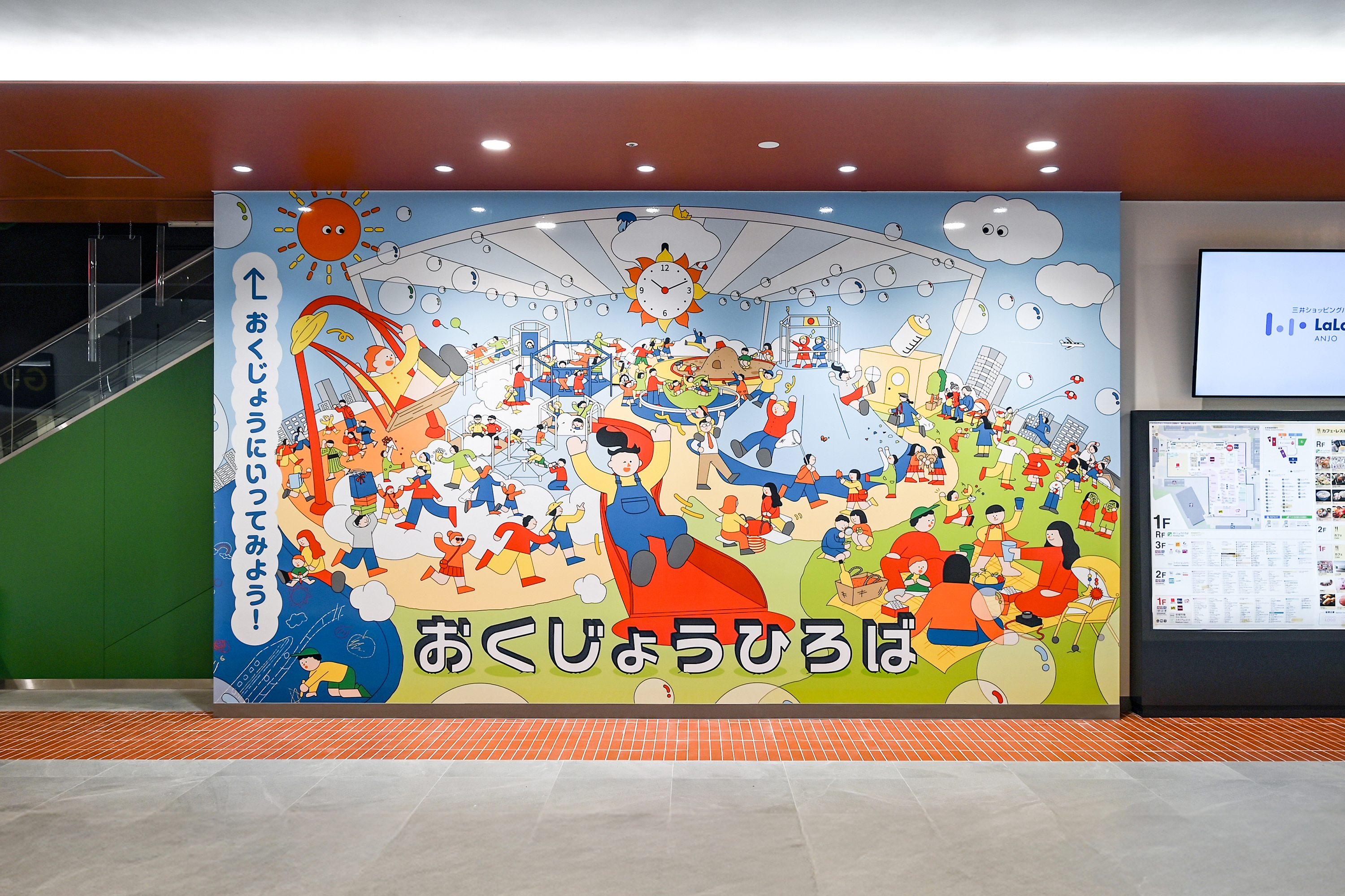 三井ショッピングパーク ららぽーと安城「おくじょうひろば」の案内・告知となる壁面グラフィックを制作しました。