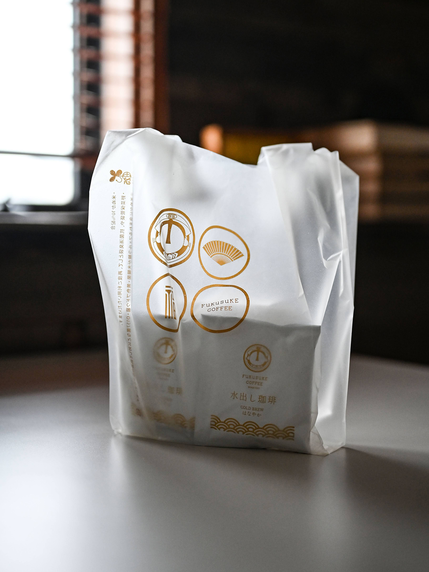 FUKUSUKE COFFEE ROASTERY CL:FUKUSUKE COFFEE ROASTERY(安城市) FUKUSUKE COFFEE ROASTERY様 レジ袋のデザインを行いました。お店のロゴや和の雰囲気を考慮したデザイン。単色で表現し、洗練された印象に。 バイオマス成分配合(米ぬか10%)抗菌・消臭作用のあるレジ袋への印刷を施したものになります。 instagram @fukusukecoffee HP https://fukusukecoffee.com/shop/taste/