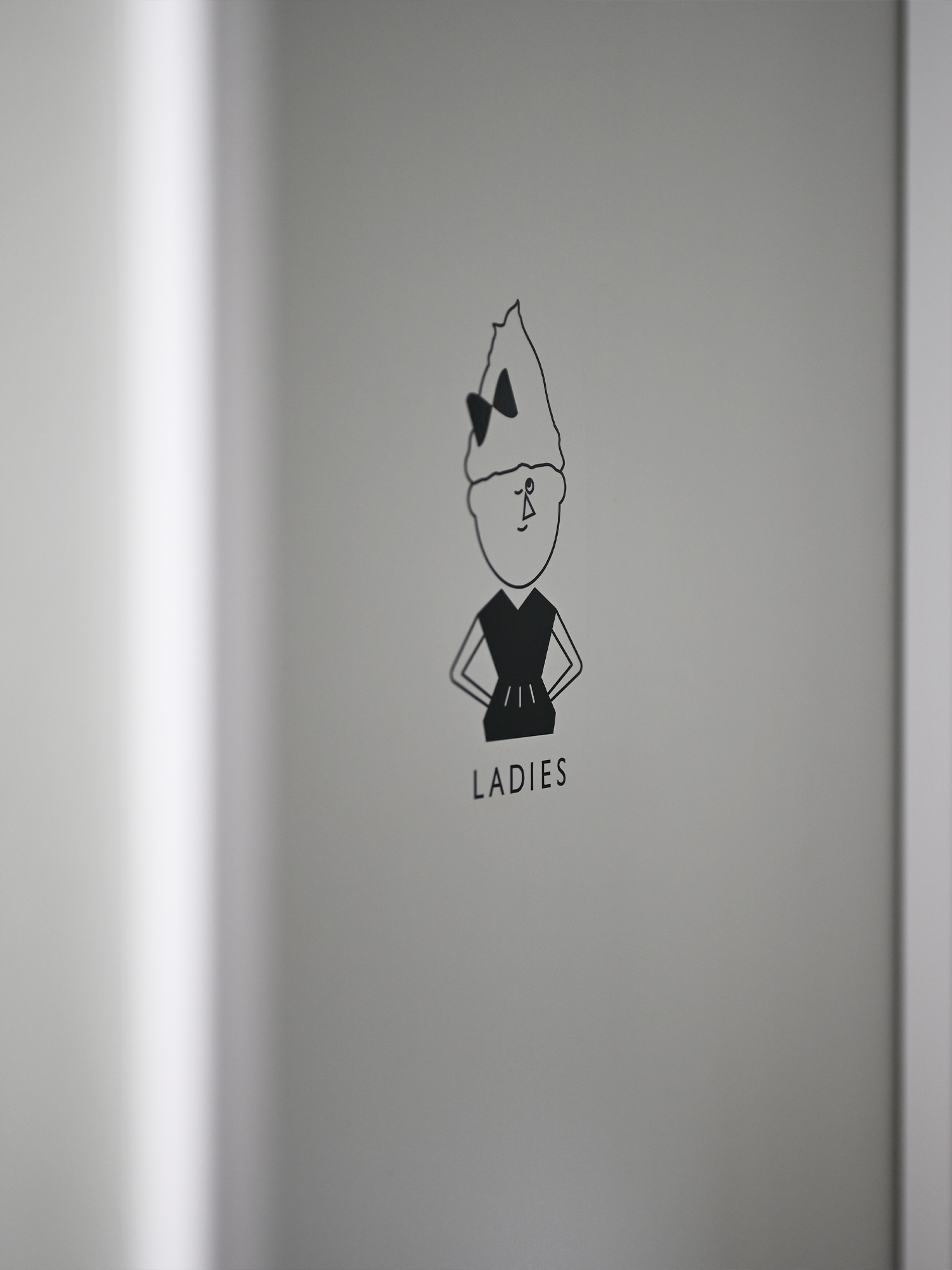 室内のドアサインにはキャラクターを使用し、ユニークで愛らしいデザインに。店内入り口には、ジェラートカップを手に持って写真が撮れるようなフォトスポットも設けています。