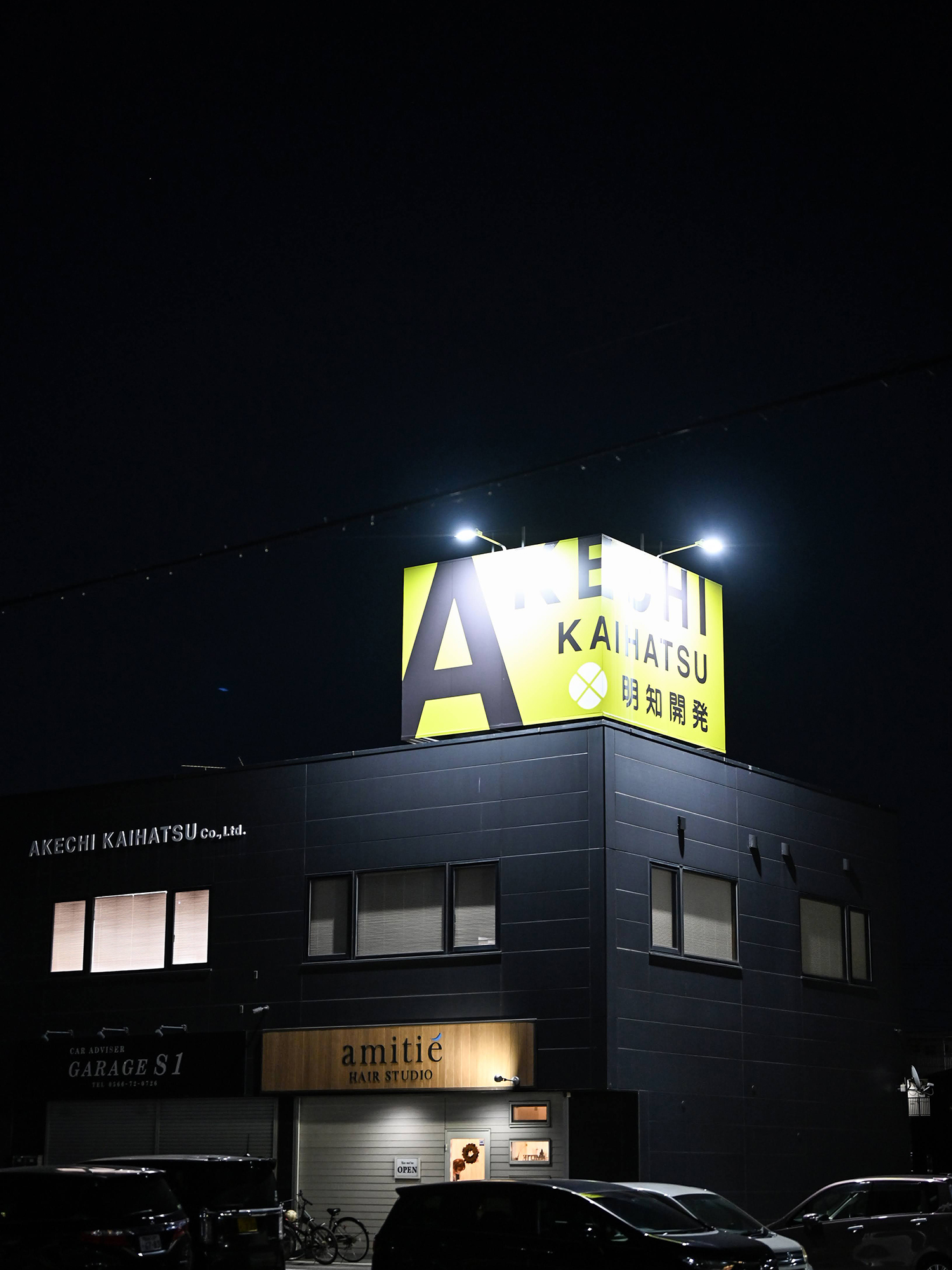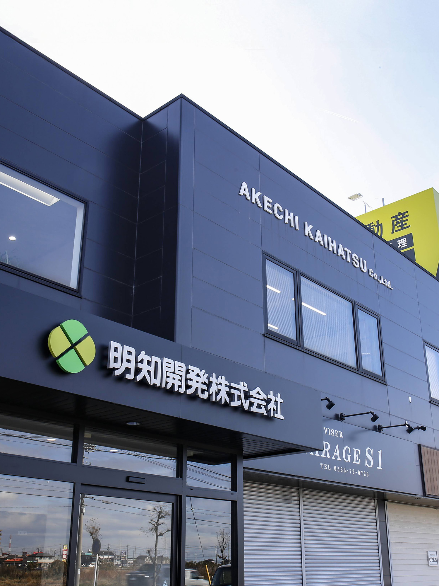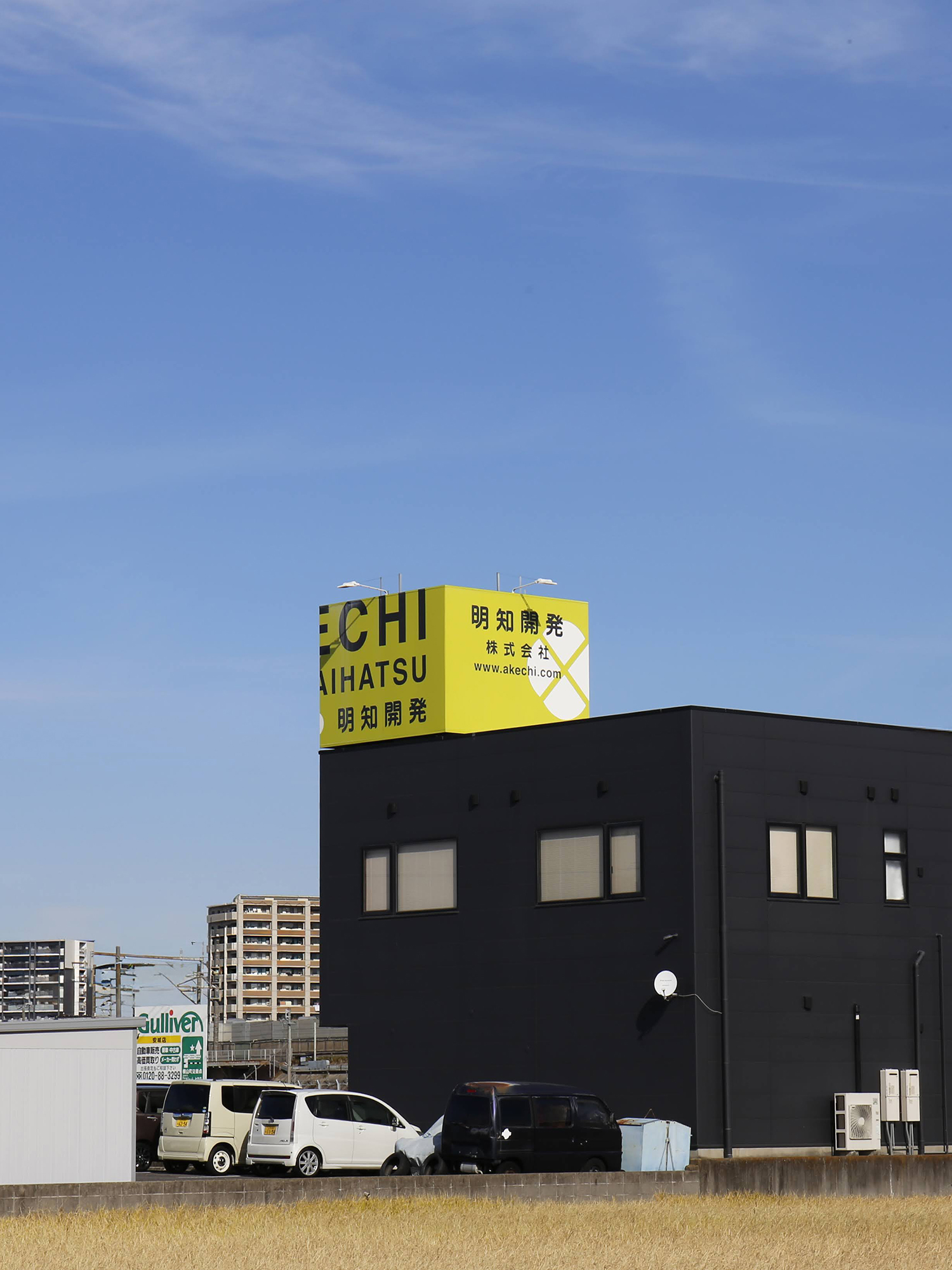 明知開発株式会社 CL:明知開発株式会社(安城市) サイン 不動産売買・賃貸のプロフェッショナル 明知開発株式会社様のサイン3種を制作しました。外壁のカラーと共にご提案し、ファサードをコーディネートしました。入口、店舗(2F部分)の2種はスタイリッシュな立体文字で品の良い印象に。建物屋上の看板は4面を活かしてビジュアル的にデザインをしました。 instagram @akechikaiha HP https://www.akechi.com/