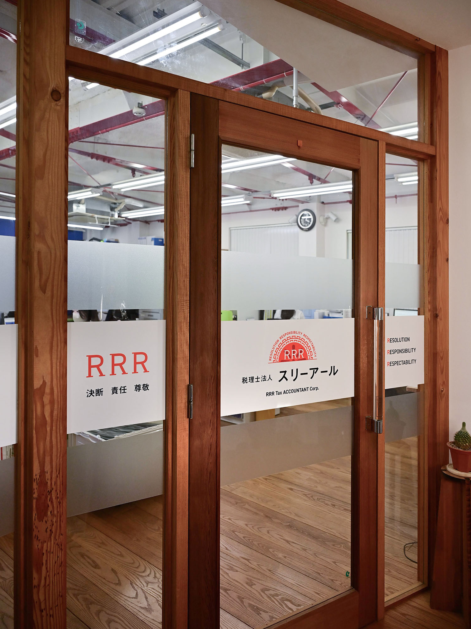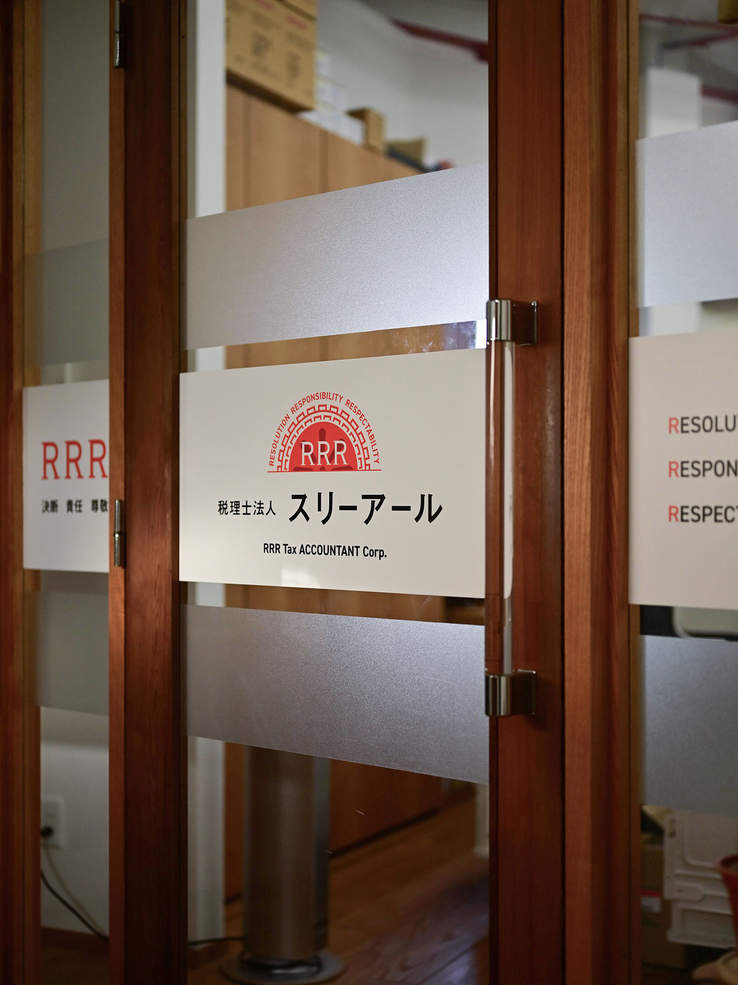 税理士法人 スリーアール CL:税理士法人 スリーアール(岡崎市) サイン 税理士法人 スリーアール様の屋上看板と内装サインのデザインをリニューアルしました。 -屋上看板- 3面ある表示面に合わせてロゴバランスよく組み替えて配置。3面ある内の1面の背景色をロゴのカラーにして抑揚をつけています。 -内装サイン- ロゴとロゴの由来であるスローガンを盛り込んだ構成になっています。入口からの視認位置を考慮しデザインをしています。