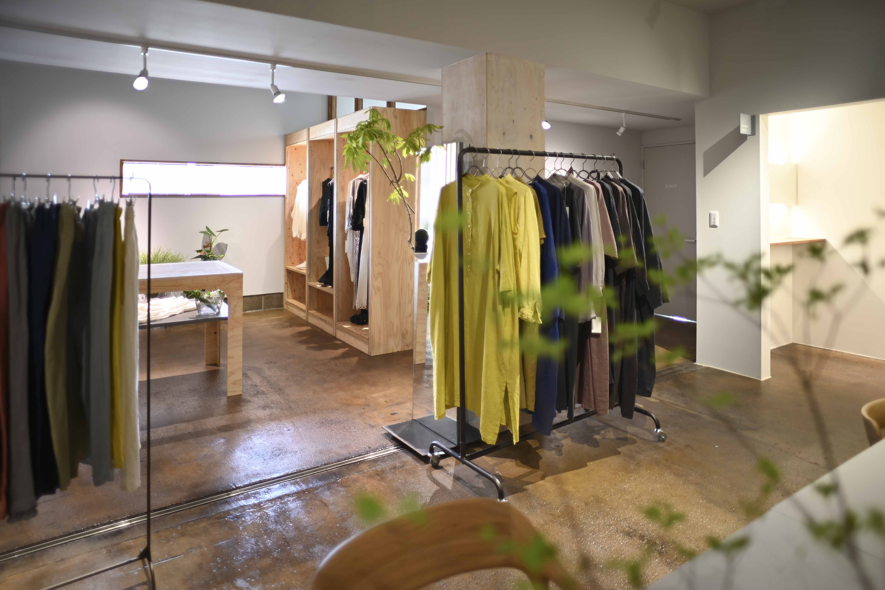フィッティングルームのラグは、毛足の風合・表情が美しいモロッコ発祥ウール100%の「ベニワレン」。カーテンはmotomi.mのリネンを使ったオリジナルのものをしつらえていただきました。
