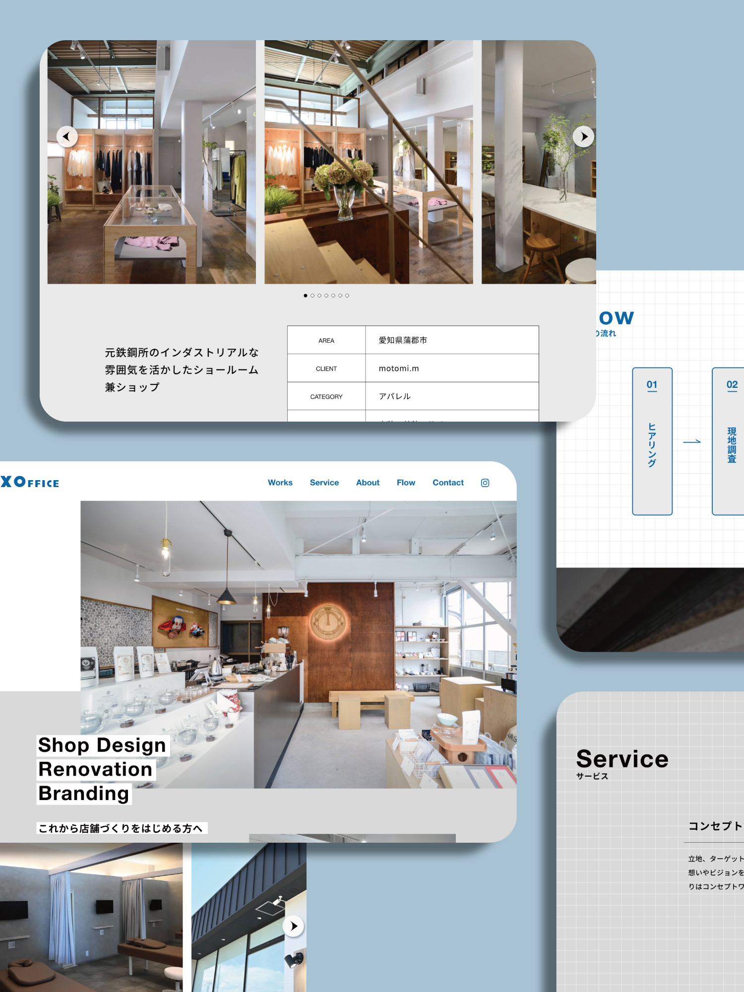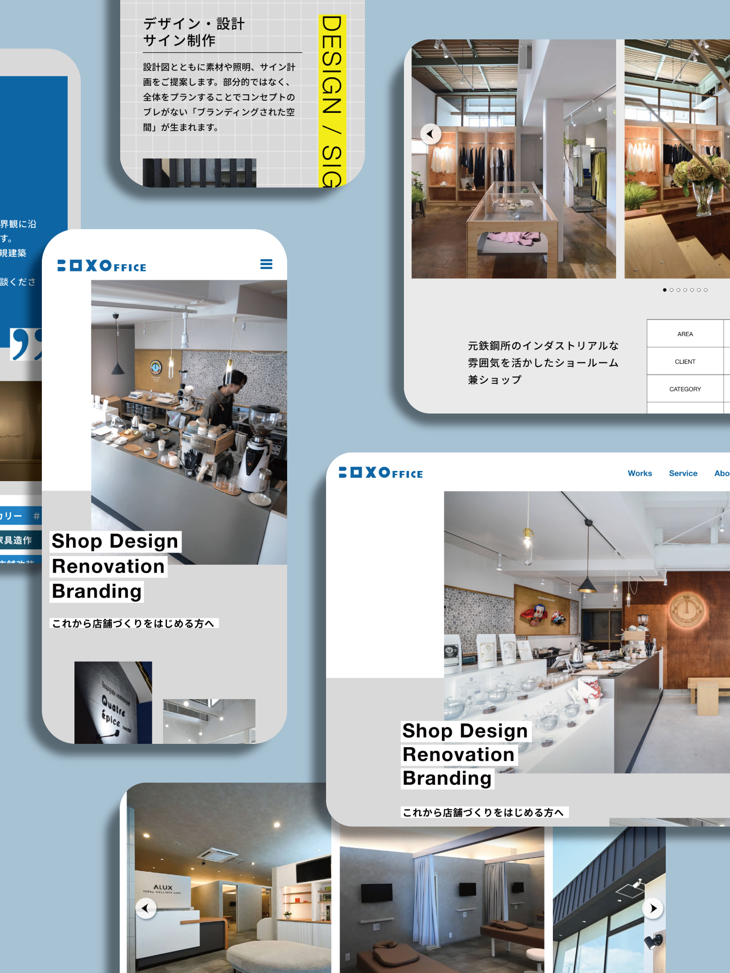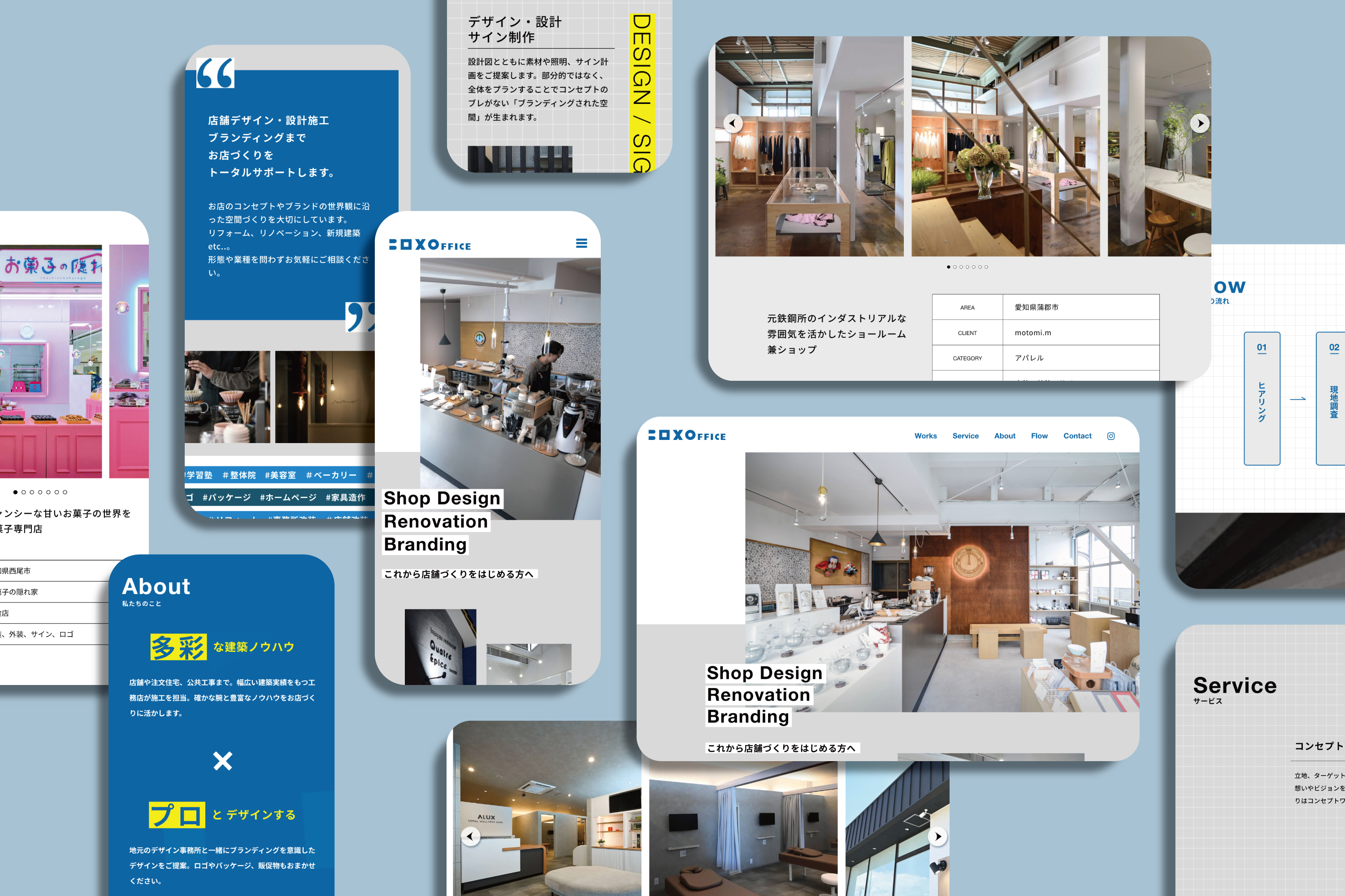 BOX OFFICE CL:BOX OFFICE WEBサイト 工務店とデザイン事務所がコラボする、店舗づくりのサポート事業 BOX OFFICEのWEBサイトをリニューアルしました。制作実績の写真・詳細を掲載するなど、これから店舗づくりをはじめる方がイメージしやすくなるよう情報設計を考慮しています。 instagram @boxoffice_mikawa @Cocowahome HP https://box-office.jp/