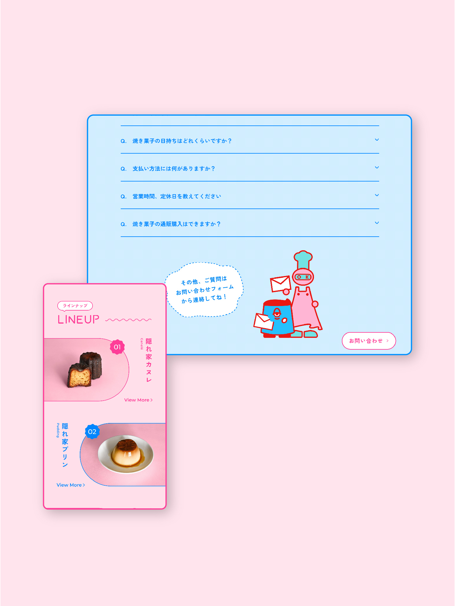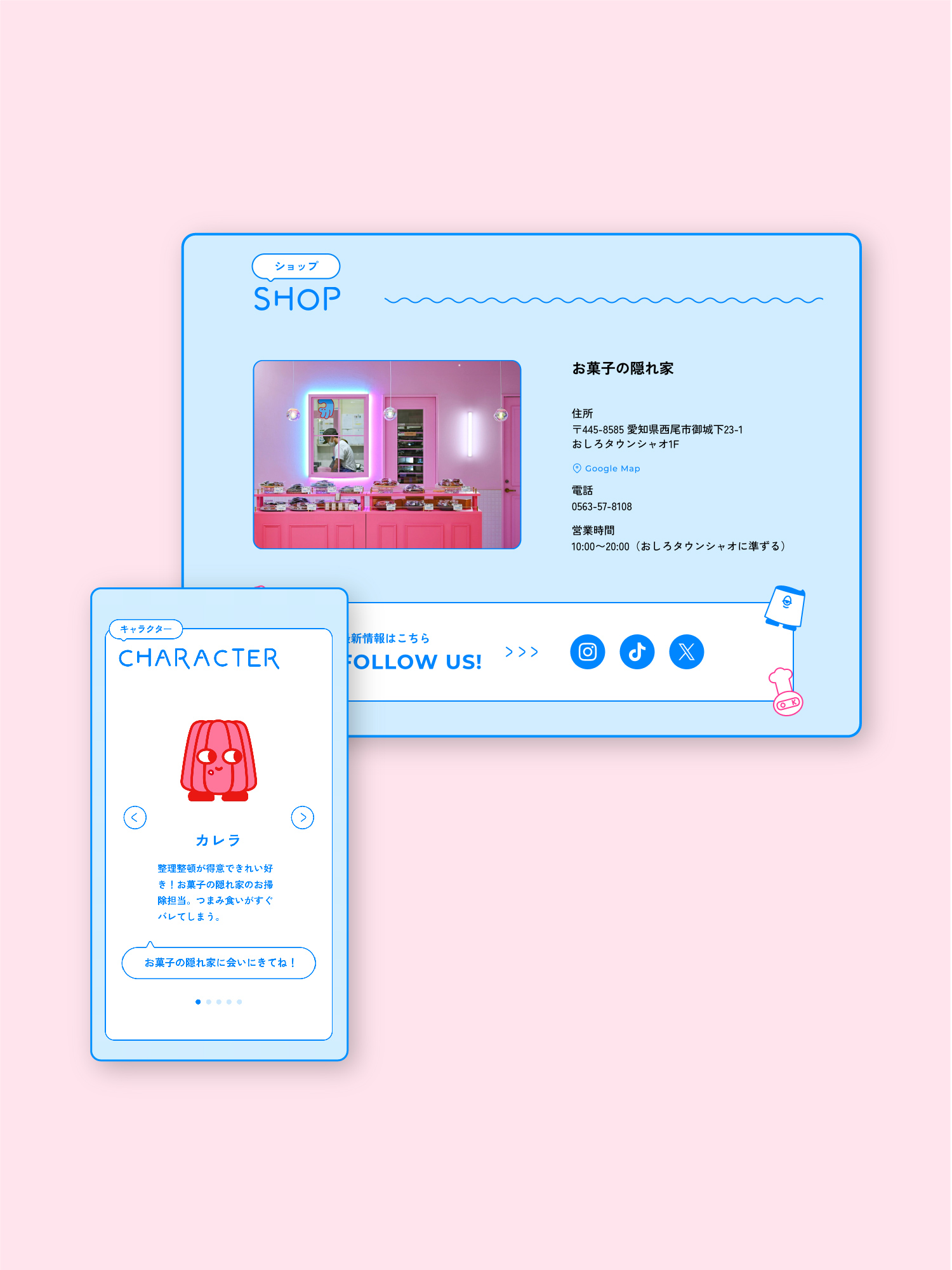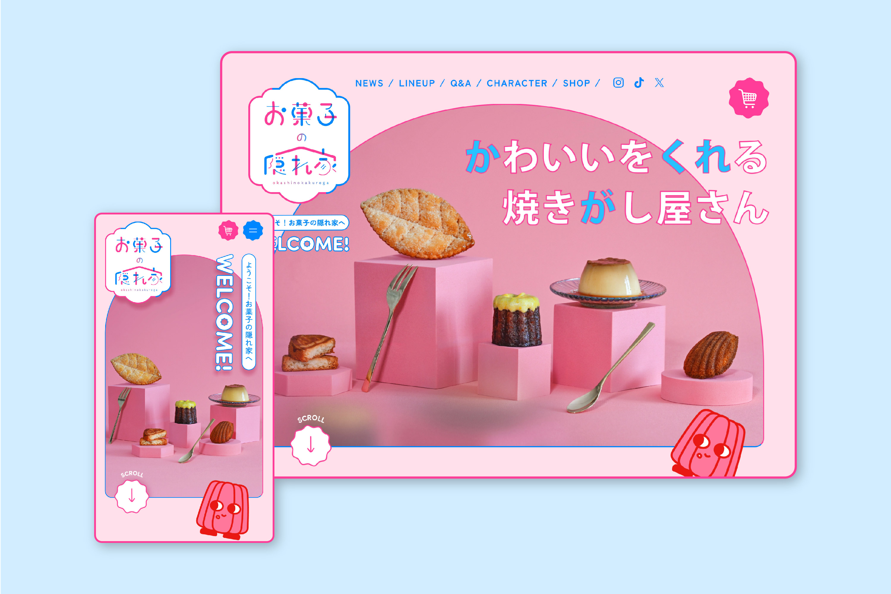 世界観に合わせ、ピンクと水色を基調としたポップで可愛いWEBサイト。