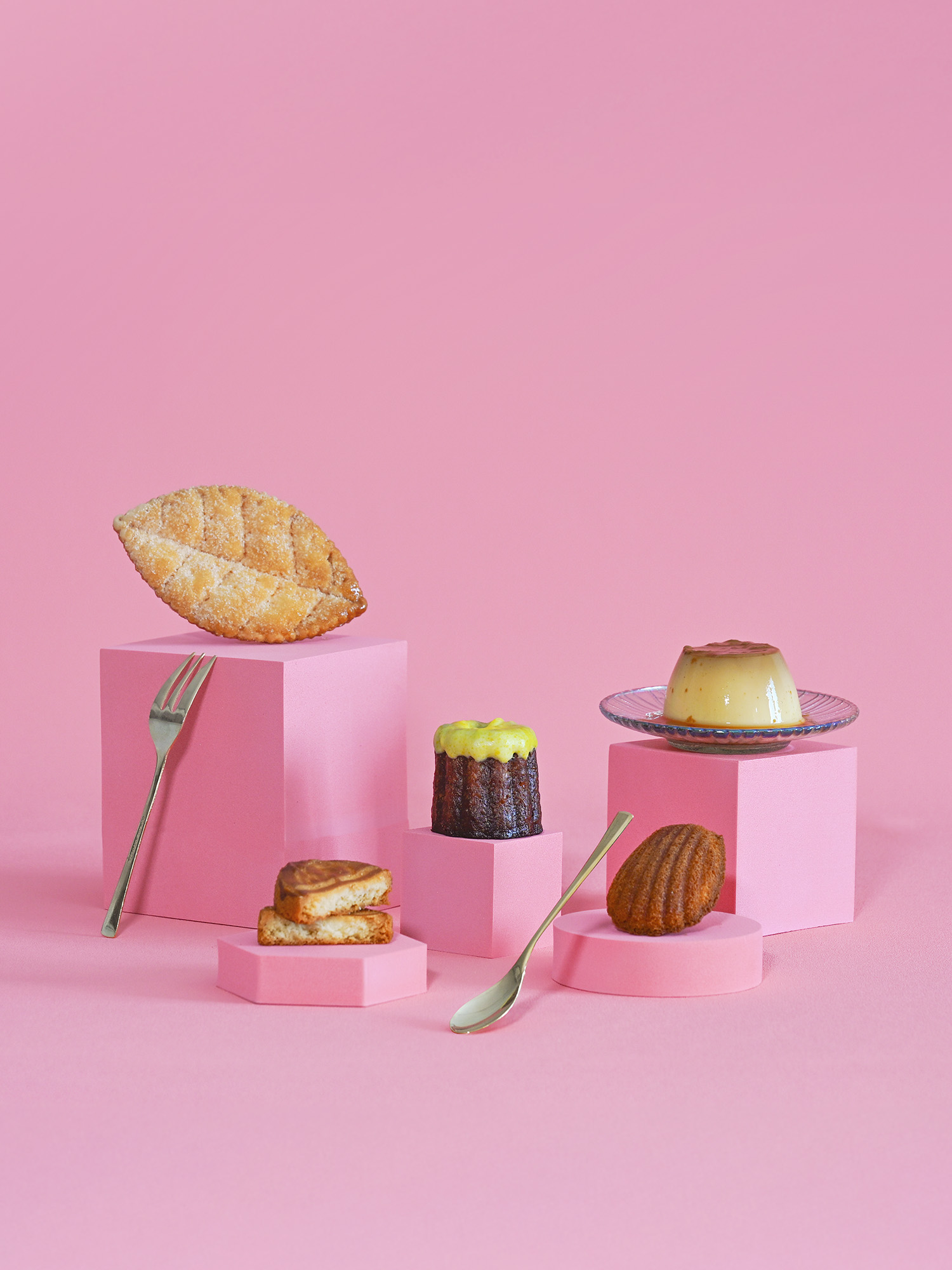 お菓子がより美味しそうに見えるよう、配置や角度、光の当て方を調整し、