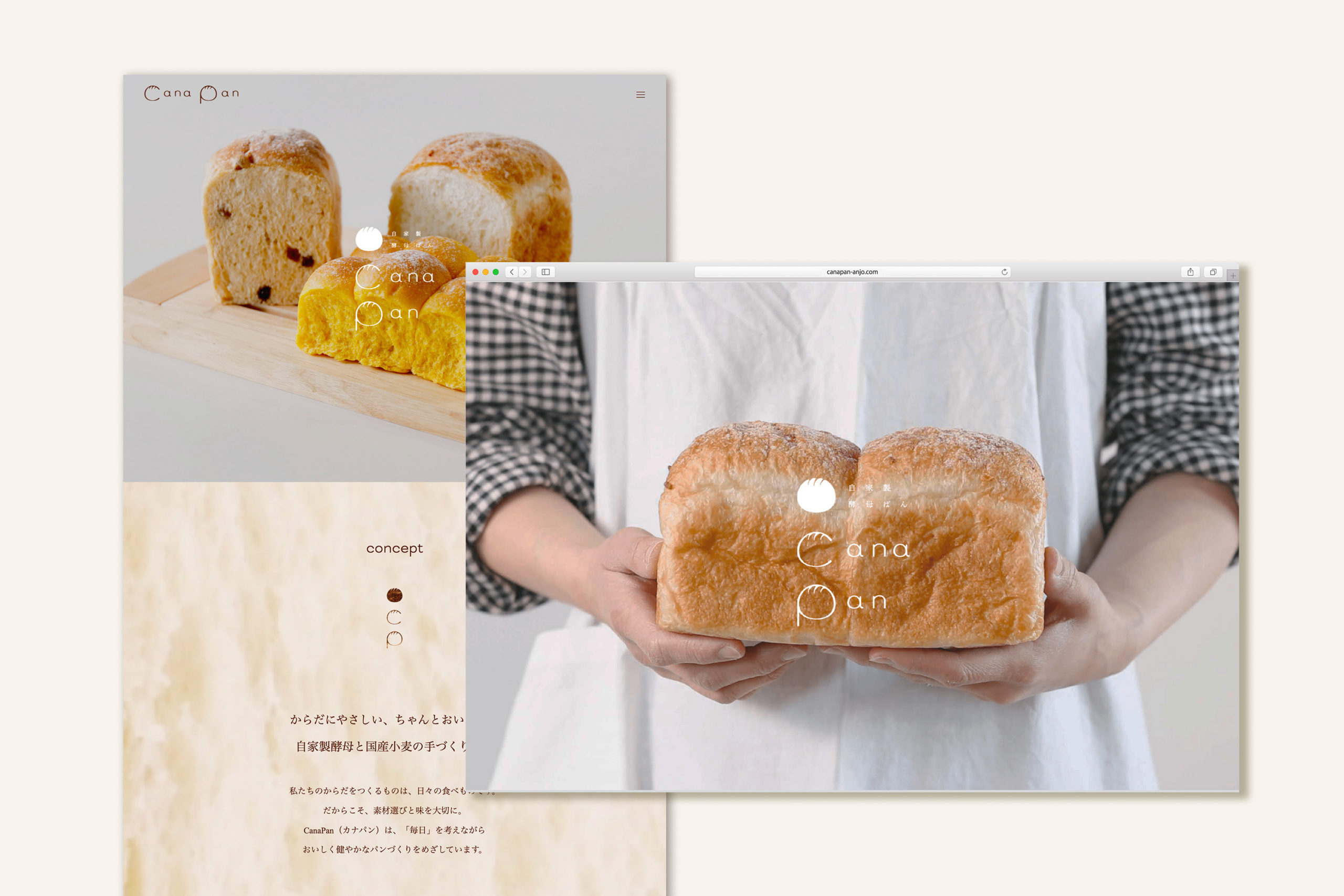 CanaPan CL:CanaPan(安城市) WEBサイト 自家製酵母と国産小麦の手づくりパン工房 CanaPan様のWEBサイトを制作しました。メインに使用されている背景はなんとパンの断面。シンプルながらも遊び心がある、優しい雰囲気のサイトに仕上げました。 instagram @cana.pan HP https://canapan-anjo.com/